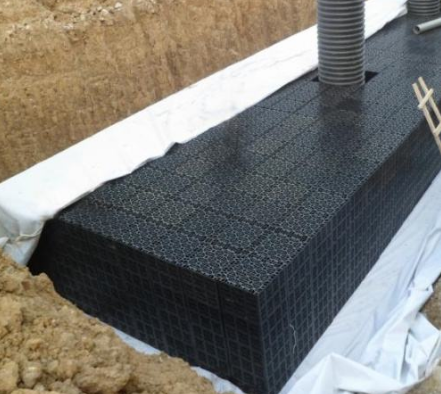 塑料模塊組合水池是以聚丙烯塑料單元模塊相組合,形成一個地下貯水池,在水池周圍根據(jù)工程需要包裹防滲土工布或單向滲透土工布,組成貯水池或滲透調洪池兩種不同類型.